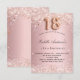 För en elegant 18:e födelsedagsfesten. En övertoningsbakgrund för rosa. Dekorerad med faux glitter damm. Anpassa och lägg till information om namn och party. Namn är skrivet med ett handskript i stil. Nummer 18 skrivs med stil-typsnittet ro guld färgad.