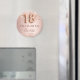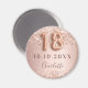 Elegant, klassisk, glamourös och feminin Save the Date-magnet för 18-årsfest. Rose gold och blush gradientbakgrund. Dekorerad med rose gold, falsk glitter, gnistrande. Anpassa och lägg till ett namn. Namnet skrivs med en modern mörkrosafärgad handskriven stil. Siffran 18 skrivs med en ballongstil-font.