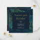 Ett modernt, elegant födelsedagsfest inbjudan, med en bakgrund av tropiskt löv i olika gröntar och ett mörk blått centrum. Texten är elegant i guld och vitt. Anpassa inbjudan med uppgifter om namn, ålder, datum och tidpunkt för party, party adress och OSA. Om ni vill lägga till någon annan text, t.ex. detaljer om aktuella idéer eller överraska party, kan ni också göra det!