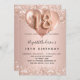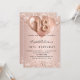 För en elegant 18:e födelsedag. En övertoningsbakgrund för ro guld. Dekorerad med ro guld, faux glitte, gnistor och ballonger. Anpassa och lägg till information om namn och party. Namn är skrivet med ett handskript stil, nummer 18 med ballong stil typsnitt.
