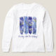 Fyra penseldrag med lila och blått lodrät skapar ett pulserande ram för blåvita och vita larksporblommor. Larkspur som också kallas delphinium är Julens födelsemånadsblomma. Penseldrag är en av de hetaste trenderna i mönster i somras. Med en textrad kan du anpassa din t-shirt. I fodral är det meningen att man ska fira födelsedag till bäran vid party.