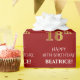 Den lyxiga och elegant födelsedagstexten som omsluter den pappra designen innehåller meddelandet "LYCKLIG 18:e BIRTHDAY,", ett anpassade namn, och födelsedagsnumret "18:e" med ett faux/imitation guld inspirerade utseende mönster. Bakgrunden är röd färgad. Att packa pappert som detta kan användas när man slår in presenter som ges för att fira någons artonde födelsedag. [~Z0000491]