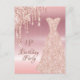 Elegant, klassisk, glamorös och gigantisk stil-inbjudan. En guld-klänning i ro med faux ro guld glitter drop, målardroppsutseende. Metallisk bakgrund i ro guld tittar. Med texten: 18:e Födelsedagsfesten på framsidan skriven med ett modernt ro färgad-handskript i stil. Lägg till din händelseinformation på baksidan. Tips! Om du inte vill att det ska se ut som ett vykort klickar du på anpassa, går till baksidan och tar bort delaren och lägger till frimärke.