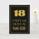Den här vintage-/återutseendet och 20-årsåldern inspirerade till den matematiska hälsningskortsdesignen med ett stort konsthugga som ser inspirerat nummer "18", meddelandet "LYCKLIG 18:e BIRTHDAY", ett redigerbart namn och ett gräns mönster som består av tunt linjer på framsidan. Framsidan har en bakgrund med svart färgad. Insidan har ett anpassat hälsning-födelsedagsmeddelande, eller så kan det kanske rensas och lämnas tomt om ett meddelande ska skrivas för hand i stället. Ett sådant här hälsningskort för personligens födelsedag kan skickas för att fira någons artonde födelsedag. [~Z0000499]