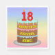 Den här pappra napkindesignen med hög pulsåder och färgfyllning har en tecknad-stil-bild av en treskiktad födelsedagskalas med numeriskt formade ljus ovanpå som visar siffran "18", tillsammans med meddelandet "LYCKLIG 18:E BIRTHDAY", och en redigerbar mottagare namn. Bakgrunden har ett monteringsspektrum för pastellregnbåge med flera färg inspirerad gradient mönster. Skämmande pappra servetter av det här slaget kan användas när man är värd för ett party för någon i firande på deras 18-årsdag. [~Z0000623]