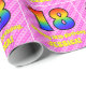 Den här trevliga och roligt 18:e födelsedagen med papper design har ett stort nummer "18" med ett färgstarkt regnbågsspektrum som inspirerar gradienten mönster. Det innehåller också meddelandet "Lycklig 18:e födelsedag" och ett eget namn. Bakgrunden är en glad mönster av ljust rosa och mörk rosa rand som innehåller levande hjärtan i rosa. Papper som denna kan användas när man slår in gåvor som ges till någon i firande på artonårsdagen. [~Z0000415]