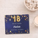 Atrendy navy blue, uneven färgad bakgrund med faux guld-stjärnor. Lägg till namn och text. Åldersnumret skrivs med ett stil-teckensnitt för ballong. Rygg: lägg till texten.
