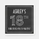 Snyggten 1920s/1930-talet inspirerade konsthändelsens utseende med den pappra napkin-designen har ett eget namn, plus meddelandet "18:e FÖDELSEDAGSFESTEN!". Siffran "18TH" har ett geometriskt fogat utseende i finare. Pappra servetter som dessa kan användas vid en födelsedagsfest som hålls i firande på någons artonde födelsedag, eller vid något annat artonde evenemang. [~Z0000659]