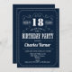 18:e Födelsedagsfest inbjudan Elegant marin blå och vit återdesign med skriptteckensnitt. Skål till 18 år! Berätta om du behöver anpassa dig ytterligare.