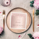 En napkin för en girig och glamorös 18:e födelsedagsfest. En faux ro guld-metallisk bakgrund tittar med elegant faux ro glitter drops, målardropputseende. Texten: namn är skrivet i mörk ro guld med ett stort modernt, handskript i stil. Mall för namn, 18 år och datum.