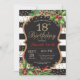 18:e födelsedagsinbjudan till flicka. Julens Födelsedagsfest Inbjudan. Julens Blommigt Flower. Svarta, röda och Guld Glitter. Svarta och vita Rand. Utskriftsformat digitalt.
