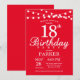 18:e födelsedagsinbjudan med String Ljus. Röd bakgrund. 13:e 15:e 16:e 18:e 20:e 30:e 40:e 60:e 70:e 80:e 90:e 100:e, oavsett ålder.