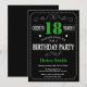 Svart och Grönt-typografi 18:e födelsedagsinbjudan. Chalkboard. Svartvit bakgrund. Vuxen Birthday. Male Manar eller Women Birthday. Kids Boy eller Girl Dam Tonåring Teenage Bday Inbjudan. 13:e 15:e 16:e 18:e 20:e 30:e 40:e 60:e 70:e 80:e 90:e 100:e. Vilken ålder som helst. Om du vill göra ytterligare anpassningar klickar du på knappen "Anpassa" och användor verktyg som är utformat för att ändra mallen.