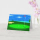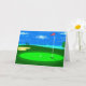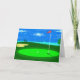 Det blir ett Lycklig Fars dag när du ge det här kortet från Pappor Little Caddy. Kort som visar en digital illustration av det 18:e hål på en golfbana med en grumlig blå himmel, sjö, träd, sandfälla och golf boll sitta på grönten, tum bort från kopp som väntar på att sättas in.