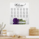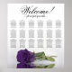 Förbättra elegansen, romantiken och flamman i firande i bröllop med detta 18 bord-sittdiagram, som rymmer upp till 180 gäster och där varje bord har 10 platser. I utformningen visas en bedövande motiv för blommigt av contemporary som innehåller en isolerad, långdragen ro i en rik, lila av royal, placerad vågrätt och reflekterande i bassäng i vatten. Rubriken är skriven i elegantens skript med kalligrafi och lyder "Välkommen! Var snäll och hitta er plats" med namn i de nya lygerna och bröllop-datumet i grund. Det här sittkartan ger en enastående möjlighet att varmt välkomna era inbjudna och hjälpa dem att enkelt lokalisera sina respektive platser.