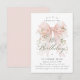 A large blush pink coquette bow is decorated with elegant pink roses on this birthday invitation. Classic script calligraphy lets your guests know it's a milestone birthday. Easy to personalize with your party details.