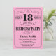 18th Svart och rosa typografi för födelsedaginbjudan. Svart och rosa bakgrund. Vuxen födelsedag. Male manar- eller kvinnafödelsedag. Ungar pojke eller flickadamen tonåring den tonårs- Bday inbjudan. 13th 15th 16th 18th 20th 21st 30th 40th 50th 60th 70th 80th 90:e 100. Några åldras. Behaga klickar "skräddarsy den" knäppas och använder vårt designverktyg för att ändra denna mall för mer ytterligare customization.