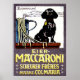 C. 1910 poster reklam för Colmaria Maccaroni. Poster visar en Dachshund som motsätter sig uppmaningen att äta fullt av hett pasta som vilar på en köksdiskett.