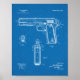 1911 Vintage Colt Browning pistol. USA:s patenttekniska utformning teckning. Alla våra amerikanska patentverk teckning har återställts och förbättrats så att de ser underbara ut på små till stora utskrifter för framtagen konst. Fler patentutskrifter under vårt avsnitt "USA Patent Prints". Blå teknisk konstruktion papper bakgrund med vit linje teckning.