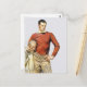 Det här vykortet har en 1913-målning av J.C. Leyendecker, som skildrar en stilig, idrottslig ung fotbollsspelare i sin fotbollsuniform, bär en fotboll.