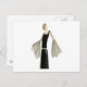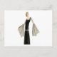 Ett kvinnoillustration i mode 1920 med dam i en svart klänning med breda, flytande sleever.