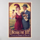 • A joyous vintage-style faux advertisement from the 1920s for "Ruby Harvest" wine, promising sunshine and celebration in every sip. This charming parody design captures a stylish flapper and her man in the vineyard.
