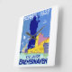 Vintagen 1927 poster firandet av århundradet i Bremerhaven, Tysklant, som grundades 1827. I designen visas en hamnvy över staden och Roter Sand-fyren i bakgrunden.
