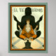 Art Deco poster i mars 1927 Buddhist-täcket för Fransk tidskriften La Vie Parisienne i skuggor av turkospatal, rost orange och svart.