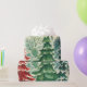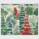 Julgranar i ett snölandskap på ett snö täckt underlag, i mitten av århundradets stil i form av illustration, kryddfärgning, amerikanska avtryck 1880-1950, rött och nödtorn, detaljritning, tapet, utförliga illustrationer