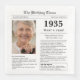 Önska lycklig födelsedag till någon född 1935 med denna unika tidningsliknande födelsedagsservett, inklusive ett foto av mottagaren och en samling roliga fakta och världsnyheter från året de föddes. Designad för att likna en gammal tidning i klassisk svart-vit stil. Ett sött och roligt sätt att fira 1930-talet!