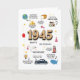Ta en nostalgisk resa tillbaka till 1945 med det här födelsedagskortet! Det här är inte bara ett kort, det är som en tidskapsel som är packad med uppgifter om roligten från det år du föddes. Högerna i centrum är 1945, omgiven av fascinerande trivia: USA och världsbefolkningen, priset på gas och bröd, kostnaden för ett nytt hus och till och med det mest populära barn namn på året. Perfekt för att fira en födelsedag är det här kortet säkert för att återföra minnen, starta roligtar och få alla att le. Ett tänkvärt, unikt och återskapande sätt att hedra någon speciell! Inuti födelsedagskortet: och många, många fler!