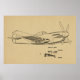 1946 WW2 Flygplanspatent Art Teckning Skriv ut Poster