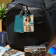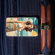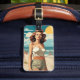 Bilden är en levande popart-stil-poster som skildrar en 1950-talets sommarstrand. En självsäker kvinna med omfångsrikt vågigt hår, med en vit snyggt och orange baddräkt, står på framträdande plats i förgrunden. I bakgrunden har andra bögar olika aktiviteter längs kustlinjen, med ett starkt sol som lyser i ett blå himmel prickat med moln. Den totala estetiska kombinationen mellan retro mode och en livlig, nostalgisk atmosfär.