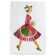 Jul som det såg ut på 1950-talet med denna retrokonst av en dam helt klädd i hatt och vid kjol i glitterröd och grön.