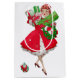 Julen som den såg ut på 1950-talet med denna retrokonst av en dam helt klädd i en klänning med full skört i rött och grönt.
