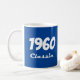 1960 Classic 60-årsfirande Kollektion. Blå bakgrund för en retro utseende sextioårsfirande design. Anpassa året 1960 för att göra detta till en unik personlig gåva. Bra design från TLS Designs.