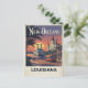• This vintage travel postcard captures the vibrant spirit of New Orleans, Louisiana. The digital illustration features a classic 1960s design, perfect for a touch of southern nostalgia.