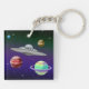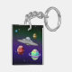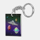 Retro Alien-kvinna i blommigt klockan grund som håller en martini i en Disco Lounge. Planeter, stjärnor och coolans galaxbakgrund.