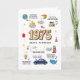 Fira en milstolpe i stil med detta unika födelsedagskort som tar ett nostalgiskt resa tillbaka till 1975! I centrum för utformningen, djärvt och stolt, står "1975" omgivet av fascinerande roligtar som för det förflutna till liv - som världen och den dåvarande amerikanska befolkningen, genomsnittspriser för gas, en brödslimpa, ett nytt hus och till och med det mest populära barn namn. Det är mer än bara ett födelsedagskort, det är en underbar tidskapsel som skapar minnen, konversationer och leenden. Det är en perfekt tankfull och roligt sätt att hedra deras resa och fira den värld de föddes in i. Inuti födelsedagskortet: och många, många fler!