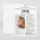 Say happy birthday to someone born in 1976 with this unique Newspaper style birthday postcard, including a photo and a collection of fun facts and world news from the year of their birth. Get creative and create a personalized keepsake. Designed to resemble a vintage newspaper in classic black and white style. A cute and fun way to celebrate the 1970s!