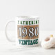 Födelsedag mugg för alla födda 1980. Firar födelseåret. Ägare är 1980 Vintage. Utformningen visas på båda sidor om mugg.
