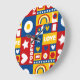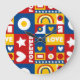 Ett urval rutor bildar ett rutnät med hjärta, stjärna och geometriska former för att skapa ett dynamiskt mönster vars budskap är forever love. Inspirerad av trenden för färg och retro-popkonst på 1980-talet. Ljusstark primär färg av rött, blått och gult med vita former och text. Utformning av en oberoende-artist, Rene Dauphine.