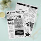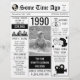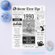 Mallen innehåller 1990-talsuppgifter och statistik med utrymme för personliga foton och information om arvodet. Gör det till din egen genom att lägga till text och personliga foton (bilderna ändras automatiskt till svartvitt). Om du vill komma åt avancerad redigering av verktyg går du till "Anpassa", rulla ner och trycker på länken "klicka för att anpassa ytterligare". Om du vill ha mer matchande design klickar du på länken "Övriga produkter från den här samlingen".
