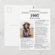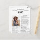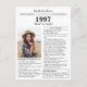 Önska glad födelsedag med detta unika tidningsliknande födelsedagskort, som innehåller ett foto av mottagaren och en samling roliga fakta och världsnyheter från 1997. Bli kreativ och skapa en personlig souvenir. Designad för att efterlikna en gammal tidning i klassisk svart-vit stil. Ett sött och roligt sätt att fira nittiotalet!