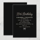 Elegant svart och vit inbjudan med vit pärlskrift och en liten pärlslinga på svart bakgrund.
