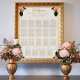 Vigselsens bordskarta har 19 bord. Bakgrunden är vit marmor. Namnen på bruden och brudgummen och titeln Välkommen är skrivna med en elegant kalligrafisk skrift. All text har en gyllene färg.