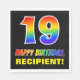 Den här färgstarka, roliga och roligt pappra napkin-designen har ett stort nummer "19" och meddelandet "GRATTIS PÅ FÖDELSEDAGEN", som båda har en regnbågsspektrumövertoning som inspirerar mönster, tillsammans med en fet gult personlig mottagare namn. Bakgrunden är svart på färgad. Roligt, skräddarsydda pappra servetter som denna kan användas vid en party som hålls för att fira någons nittonårsdag. [~Z0000476]