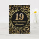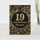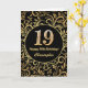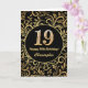 19:e födelsedag Svarta och Guld-Blommönstret Kort