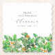 Perfekt bord-decor under en decemberfödelsedagsfest. Holly är födelseblomman den månaden. Det utgör en söt vattenfärg grund gräns på denna pappra fyrkant för den personligen som underlägg. Namn, ålder och födelsedatum för födelsedagen placeras ovanför den med hjälp av elegantens kalligrafi och typografi. All text kan redigeras.