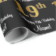 Den här sofistikerade, elegant- och lyxfärgade papprare designen med födelsedagskalas har ett stort ordnummer "19:e" med faux-/imitation guld-inspirerad övertoning mönster, plus hälsning födelsedagskalenderns meddelande "19:e födelsedagen i Lycklig" och en namn som får anpassningsbar i ett skript-stil-teckensnitt. Bakgrunden är svart färgad. Det kan vara en roligt att slå ihop en gåva eller present till någon som firar sin artonde födelsedag. Det kan vara ett papprare sätt att slå ihop en gåva eller present. [~Z0000515]